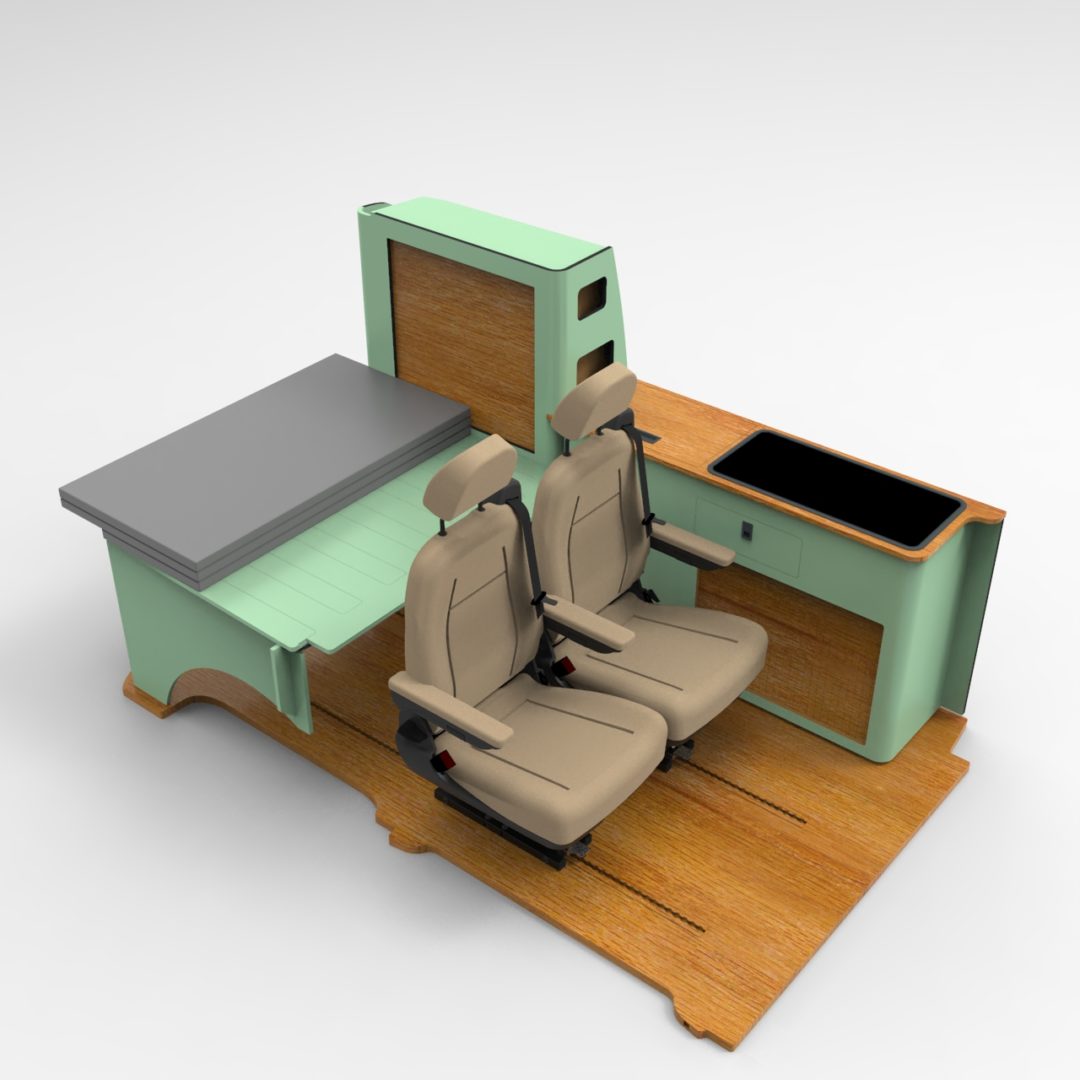 L’ensemble permet d’aménager votre véhicule utilitaire en camping-car facilement grâce à un système de montage rapide et simplifié.