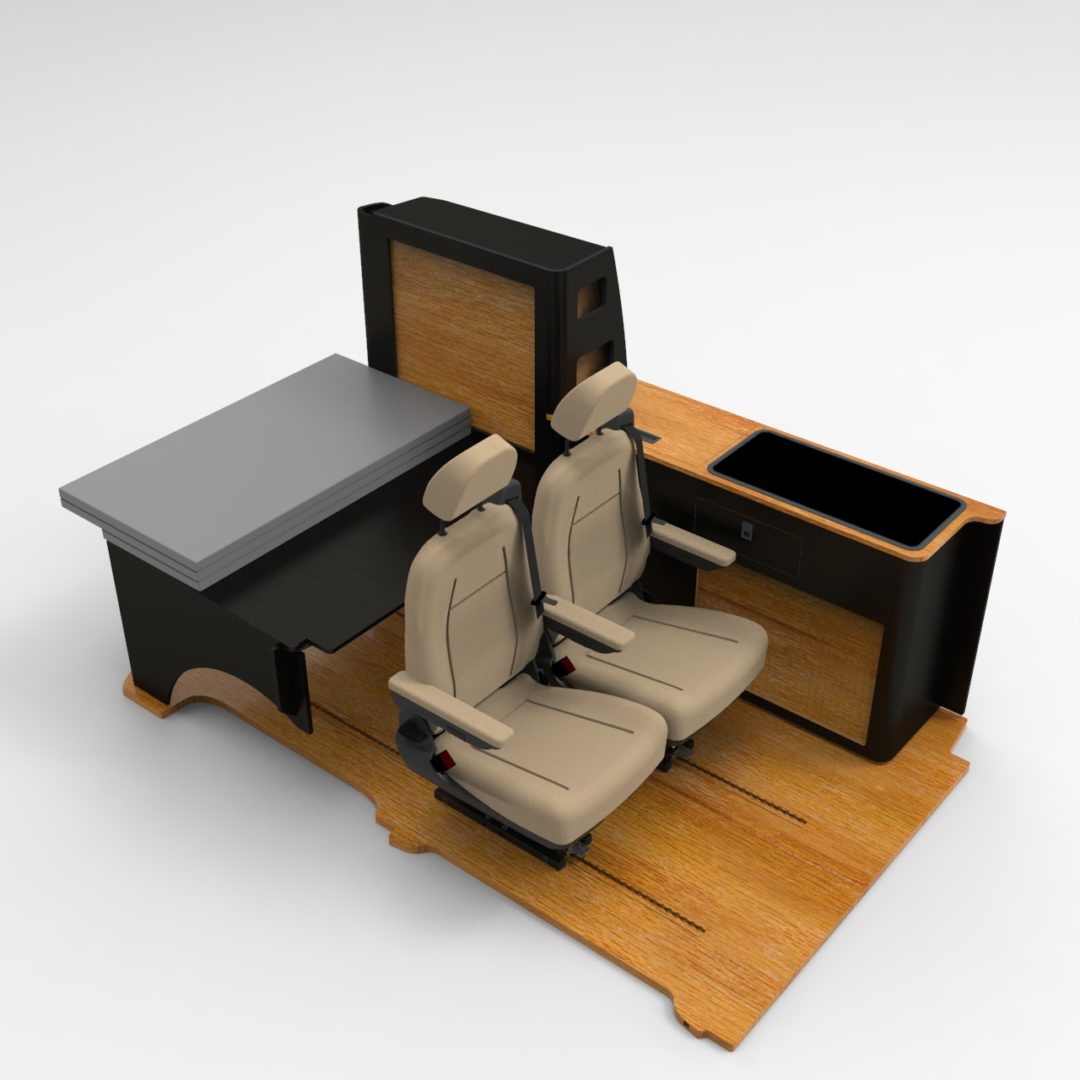 L’ensemble permet d’aménager votre véhicule utilitaire en camping-car facilement grâce à un système de montage rapide et simplifié.