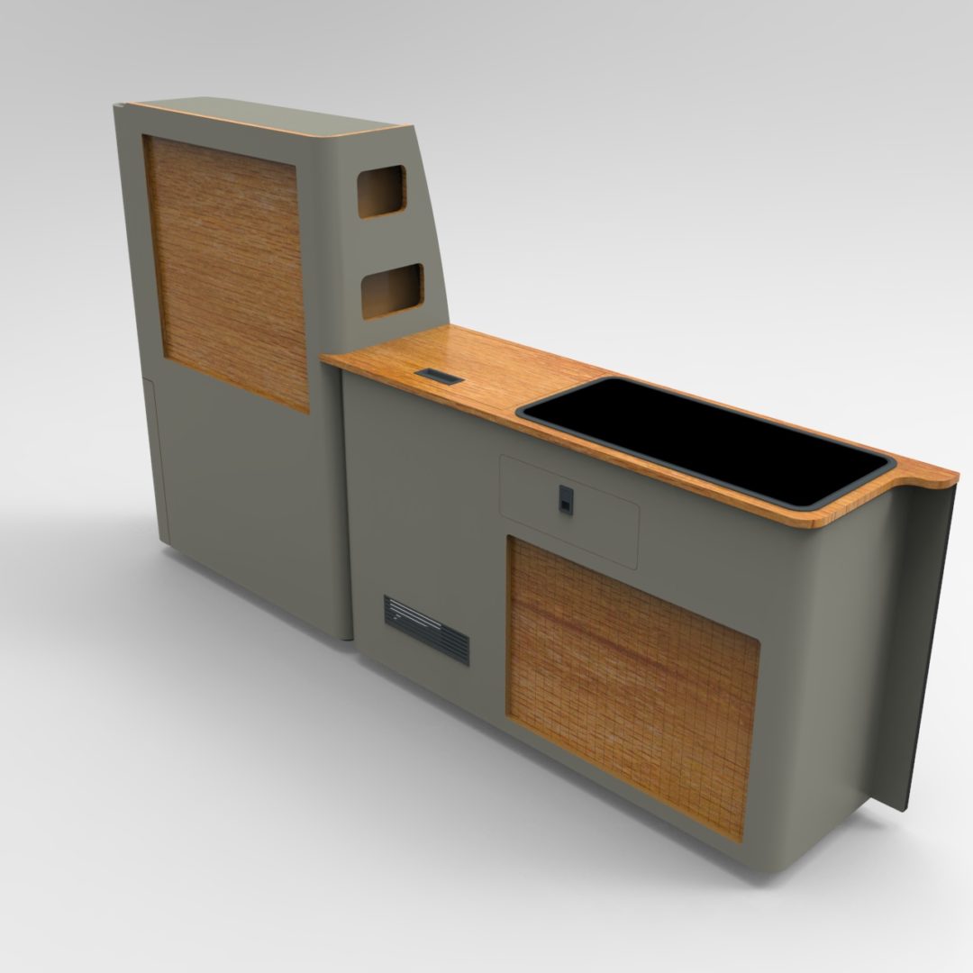 - Un emplacement pour réfrigérateur à compression, compression WEBASTO BI 36 ou équivalent. (NON FOURNI)