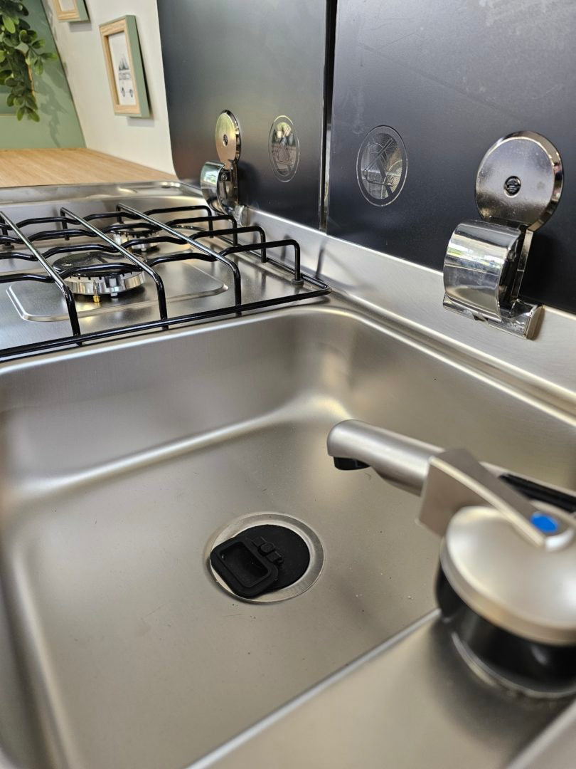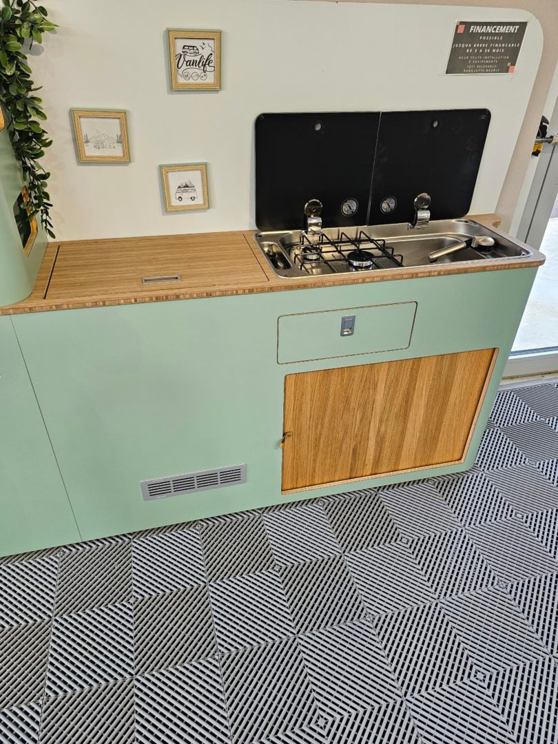 - Combiné deux feux avec évier DOMETIC MO9222R avec installation gaz. Bouteille de gaz non fournie.