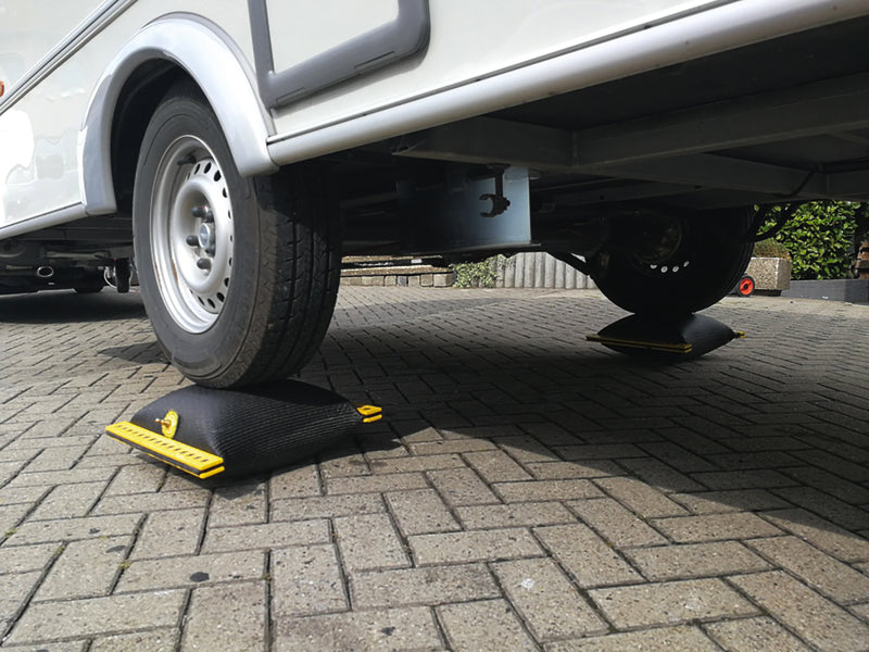 Le coussin compensateur Air-Lift est un coussin de levage à air comprimé résistant, résistant à l'usure, à l'essence, à l'huile et à l'acide. Il a été spécialement développé pour les camping-cars et les caravanes et a une capacité de charge de 11 tonnes. L'Air-Lift permet de compenser les inégalités de surface et les différences de hauteur du sol en continu de 1,5 cm à 20 cm. La manipulation confortable et sans effort est un autre avantage : le coussin est simplement placé sous la roue pour être soulevé. Avec une pompe à main/à pied ou un mini-compresseur 12V, le véhicule peut être mis à niveau en 4 minutes environ dans l'espace de manœuvre le plus étroit. L'Emuk Air-Lift est fabriqué dans une usine "Made in Germany" avec des matériaux de haute qualité et un savoir-faire propre. Des bandes d'aluminium légères enduites d'un revêtement en poudre stabilisent le corps de pression en caoutchouc renforcé par des fibres aramides à haute résistance. Une peau en caoutchouc particulièrement épaisse (construction sandwich) assure au coussin d'air comprimé une protection suffisante contre les influences extérieures des pierres, des blocs ou des éclats. Le profil ondulé offre une adhérence antidérapante pour les roues à soulever.