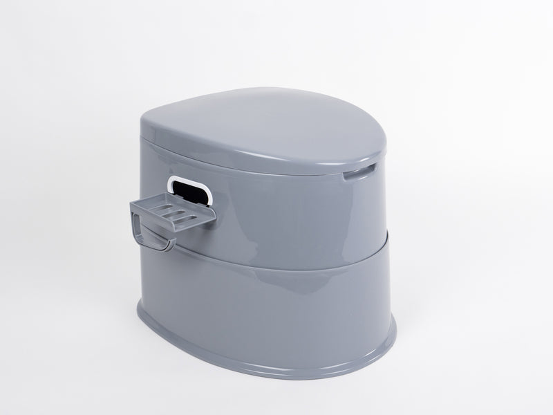 Toilette seau divisible, avec système de fermeture amortie, porte-papier hygiénique et compartiment de rangement, en plastique robuste, avec seau amovible de 7l, idéale pour le camping, le caravaning et les bateaux, divisible et donc peu encombrante pour le rangement, couleur gris