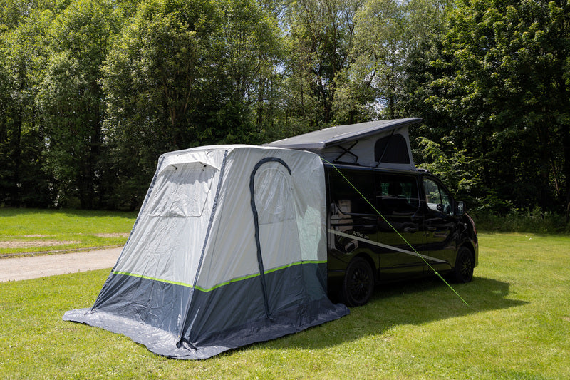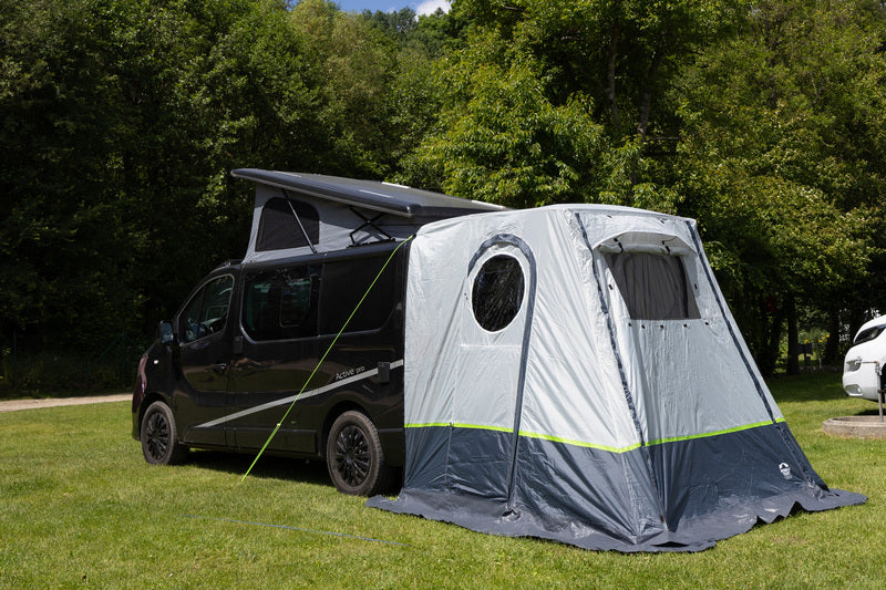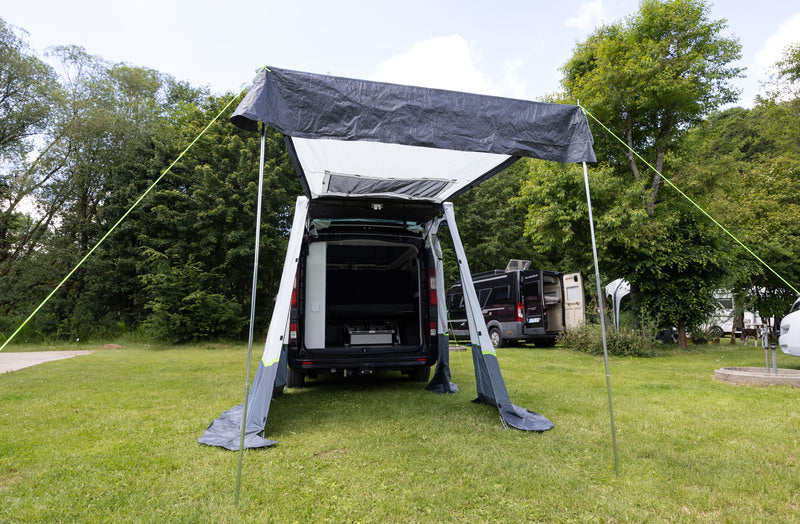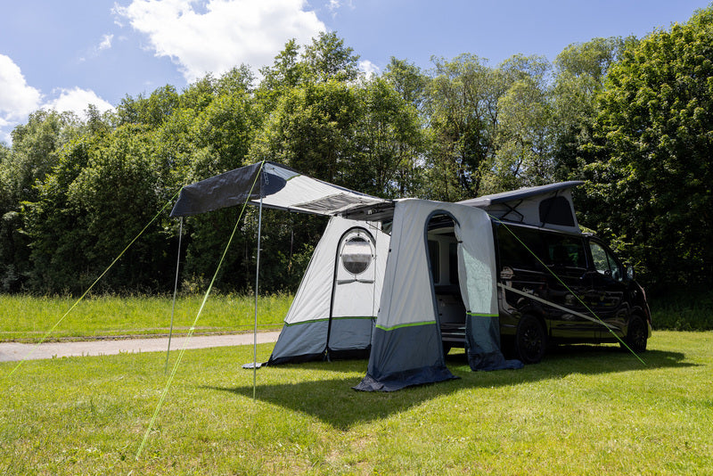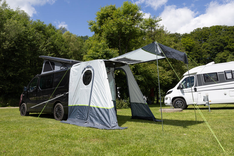 La tente arrière peut également être utilisée pour Citroen Spacetourer, Jumper et Campster, Peugeot Traveller et Expert, Toyota Proace (tous à partir de 2005) ainsi que Opel Vivaro C et Zafira Life (à partir de l'automne 2019)
