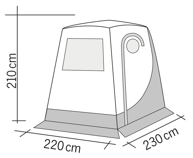 Avec un intérieur particulièrement grand, pour un lit de camp, des vélos, etc. Tirez simplement la tente arrière sur le hayon ouvert et fixez-la au sol. La paroi arrière avec fenêtre moustiquaire peut également être utilisée comme auvent.